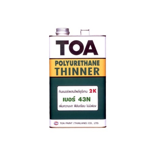 ทีโอเอ โพลียูรีเทน ทินเนอร์ เบอร์ 43N ผลิตจากตัวทำละลายอินทรีย์แบบผสมชนิดพิเศษ เหมาะสำหรับ ผสมทีโอเอ โพลียูรีเทน 2 ส่วน ช่วยให้ทาง่าย ฟิล์มสีมีการยึดเกาะที่ดี