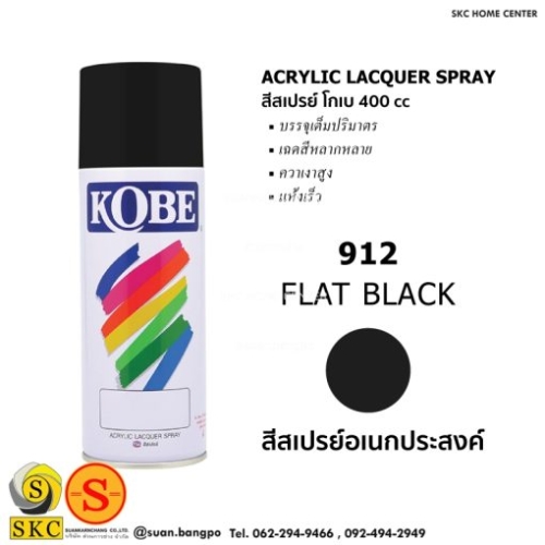 912 FLAT BLACK สีสเปรย์ KOBE 400 CC (Acrylic Lacquer Spray)