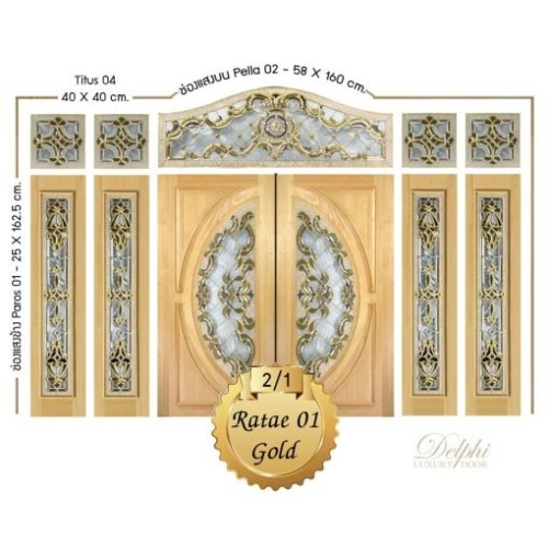 กระจกประตูหน้า Original Ratae 01 Gold ขนาด 52×162.5 cm. Delphi Luxury Door
