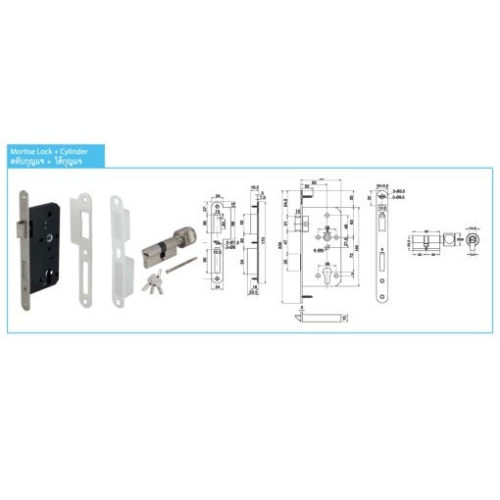 • ระยะแกนมือจับจากไส้กุญแจ 72 มม. และเจาะระยะตลับกุญแจ 55 มม.