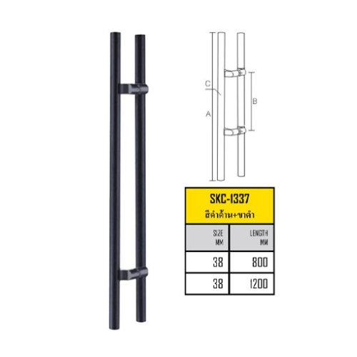 มือจับประตูสแตนเลส 1200 มม. (รุ่น SKC-1337 ดำด้าน+ขาดำ)