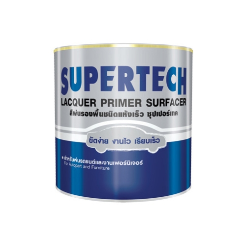 สีพ่นรองพื้นชนิดแห้งเร็ว ซุปเปอร์เทค ผลิตจากไนโตรเซลลูโรส, แอลคีด เรซิน และ ผงสีคุณภาพสูง ให้ฟิล์มสีที่แห้งไว ขัดง่าย กลบปิดพื้นผิวได้ดี สามารถยึดเกาะบนพื้นผิวได้หลายชนิด เช่น ไม้จริง, ไม้อัด และไม้ MDF