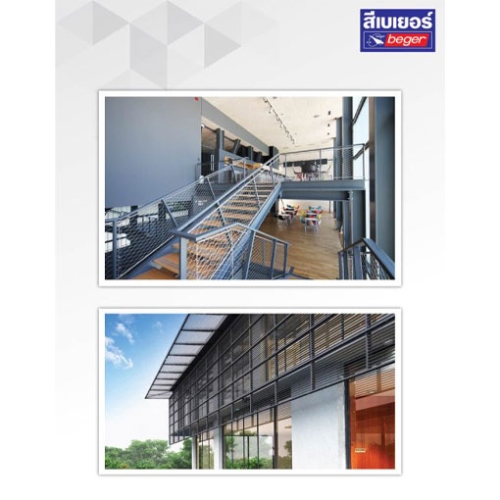 อุปกรณ์ : ลูกกลิ้ง แปรง และเครื่องพ่น การผสมก่อนใช้งาน : สำหรับการผสมเพื่อใช้แปรงหรือลูกกลิ้ง : เจือจาง 20 – 25% : สำหรับการผสมเพื่อใช้เครื่องพ่น : เจือจาง 25 – 35% : สำหรับการผสมเพื่อใช้เครื่องพ่นไร้อากาศ : เจือจาง 15 – 20%